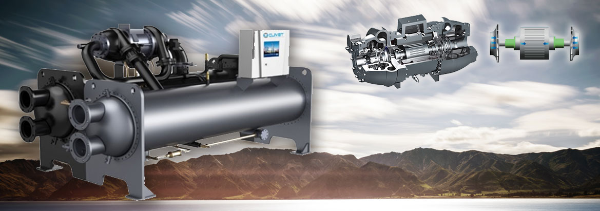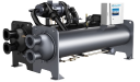 Чиллер WCHT-CN** – это водо-водяной чиллер с одним центробежным компрессором. Отличительная черта компрессора – он выполнен с двумя рабочими колесами, расположенными по концам вала (схема back-to-back), что снимает осевую нагрузку с опор и примерно в полтора раза увеличивает срок службы по сравнению компрессором, на котором два рабочих колеса расположены с одной стороны вала.